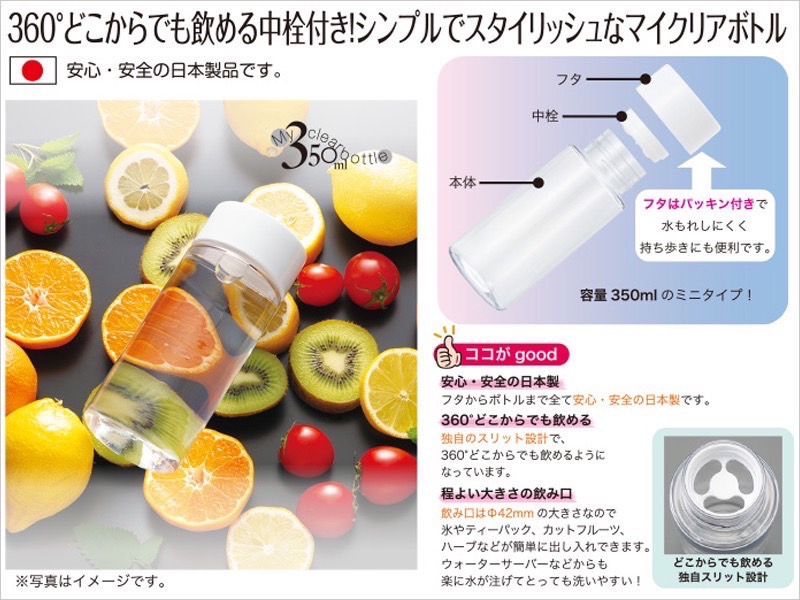 360°どこからでも飲める中栓付き!シンプルでスタイリッシュなマイクリアボトル